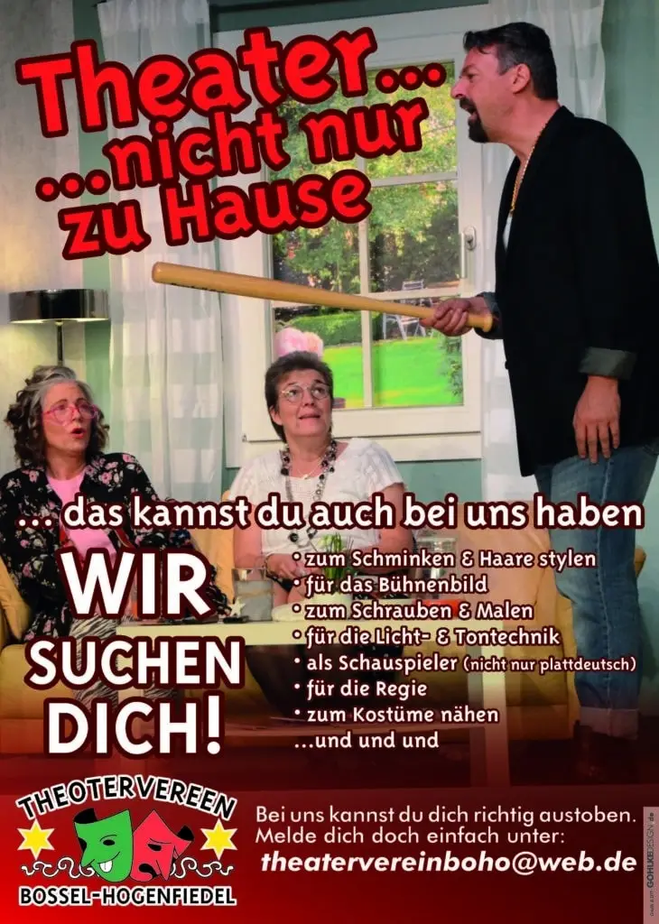 Im Frühjahr gibt’s ein unterhaltsames hochdeutsches Stück, im Herbst laden wir Sie zu einem plattdeutschen Theaterabend ein, und zur Weihnachtszeit lassen wir ein Märchen für die ganze Familie lebendig werden.